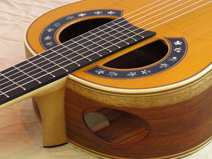 Model: Francisco Simplicio 1929 E Top: West Shinglewood Bridge: African Blackwood Fingerboard: African Blackwood Neck: Maple Back and Sides: Shedua Color: Yellow/Natural