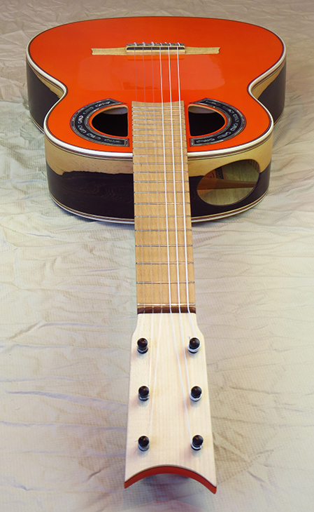 Model: Francisco Simplicio 1929R Top: Norway Spruce Bridge: Movingui Fingerboard: German Haya Neck: Flamed Maple Back: Movingui Sides: Kingwood Color: Orange/Natural