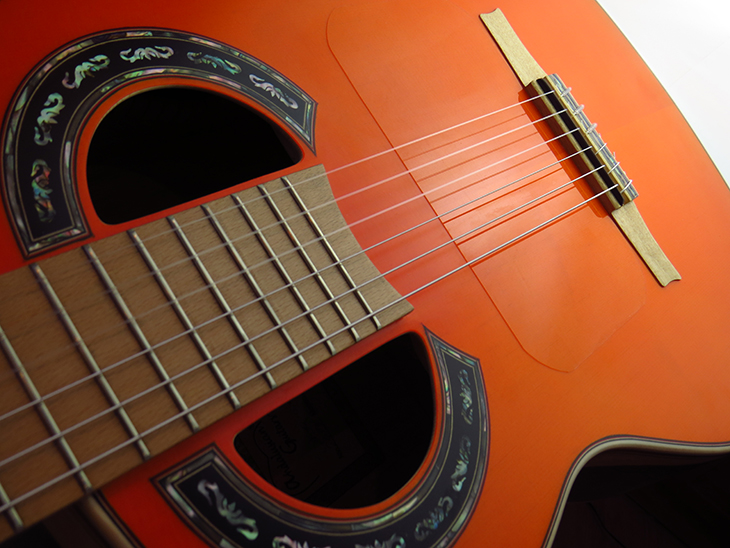 Model: Francisco Simplicio 1929R Top: Norway Spruce Bridge: Movingui Fingerboard: German Haya Neck: Flamed Maple Back: Movingui Sides: Kingwood Color: Orange/Natural