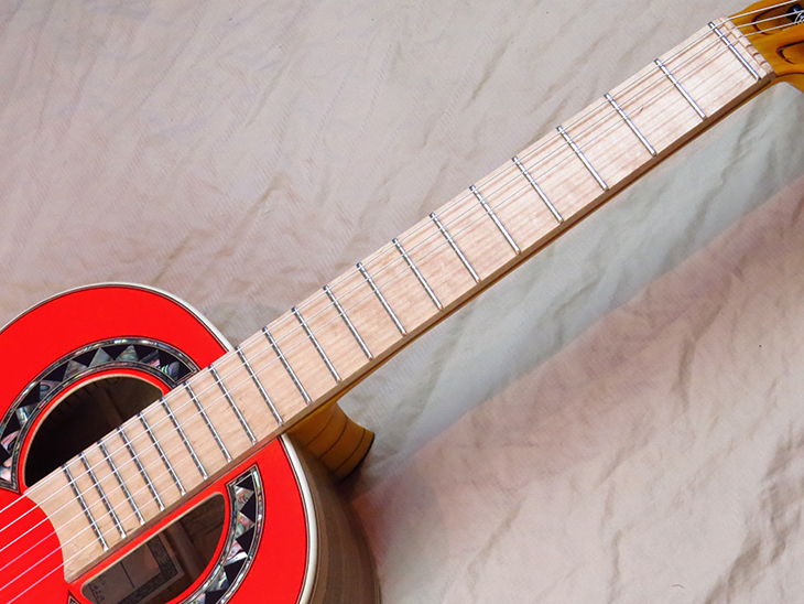 Model: Francisco Simplicio 1929 Top: Norway Spruce Bridge: Cremona Maple Fingerboard: Bird’s Eye Maple & Naseberry Neck: Tamo Ash Back & Sides: Hawaiian Koa Color: Red/Natural