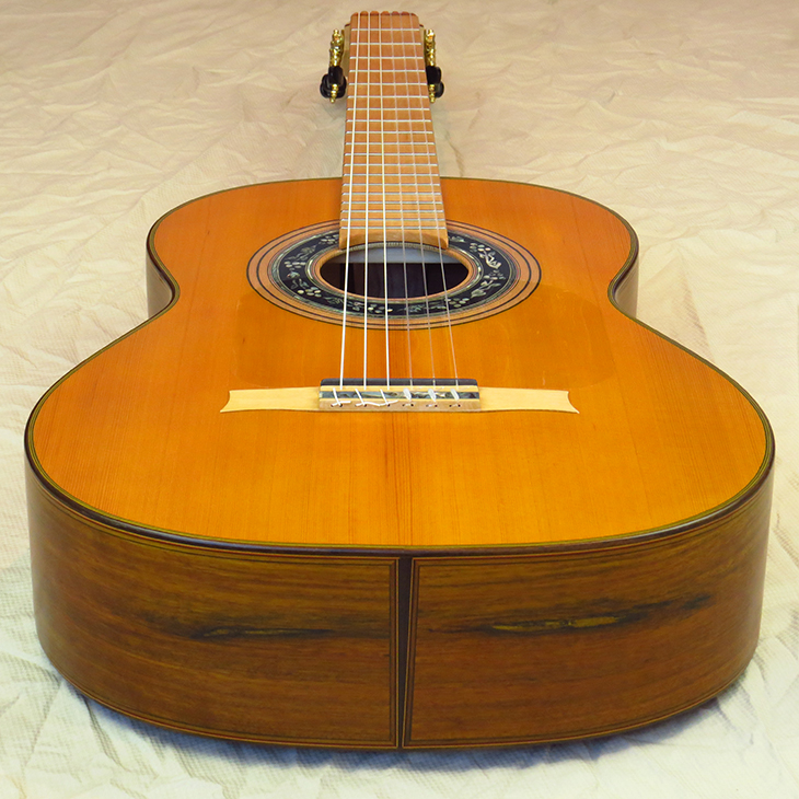 Model: Marcelo Barbero 1945C Top: Red Cedar Bridge: Haya Fingerboard: Haya Neck: Maple Back and Sides: Ovangkol Color: Yellow/Natural
