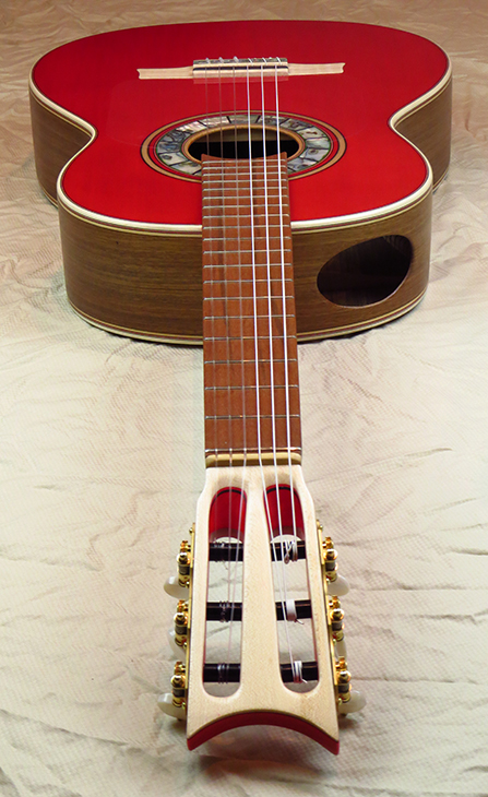 Model: Marcelo Barbero 1945 Top: Red Cedar Bridge: Maple Fingerboard: Brazilian Naseberry Neck: Flamed Maple Back and Sides: Ovangkol Color: Red/Natural