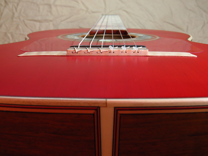 Model: Marcelo Barbero 1945 Top: Red Cedar Bridge: Maple Fingerboard: Brazilian Naseberry Neck: Flamed Maple Back and Sides: Ovangkol Color: Red/Natural