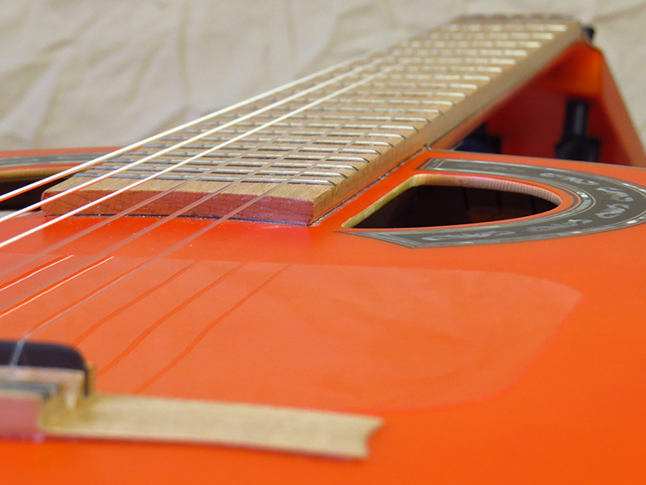 Model: Francisco Simplicio 1929R Top: Norway Spruce Bridge: Movingui Fingerboard: German Haya Neck: Flamed Maple Back: Movingui Sides: Kingwood Color: Orange/Natural