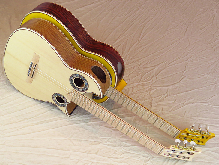 Model: Francisco Simplicio 1929BW/ Double Cutaway/ Scale 610mm Top: Norway Spruce Bridge: Maple Double Fingerboard: Bird’s Eye Maple & Brazilian Naseberry Neck: Flamed Maple Back: Maple Sides: Ovangkol Color: Natural