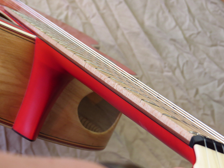 Model: Francisco Simplicio 1929r with Wittner Pegs* Top: Norway Spruce Bridge: Flamed Maple Double Fingerboard: Bird’s Eye Maple & Naseberry Neck: Maple Back and Sides: Persimmon Color: Red/Natural