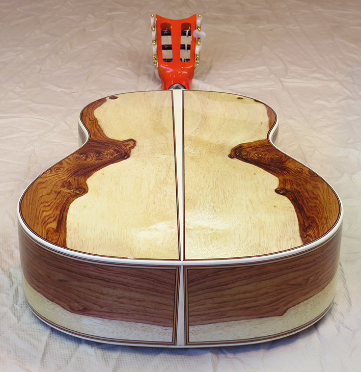 Model: Francisco Simplicio 1929ce French Polish Scale 610mm (Short Scale) Top: Red Cedar Bridge: Bird’s eye Maple Double Fingerboard: Bird’s Eye Maple & Cocuswood Neck: Flamed Maple Backs and Sides: Cocuswood Color: Red/Natural