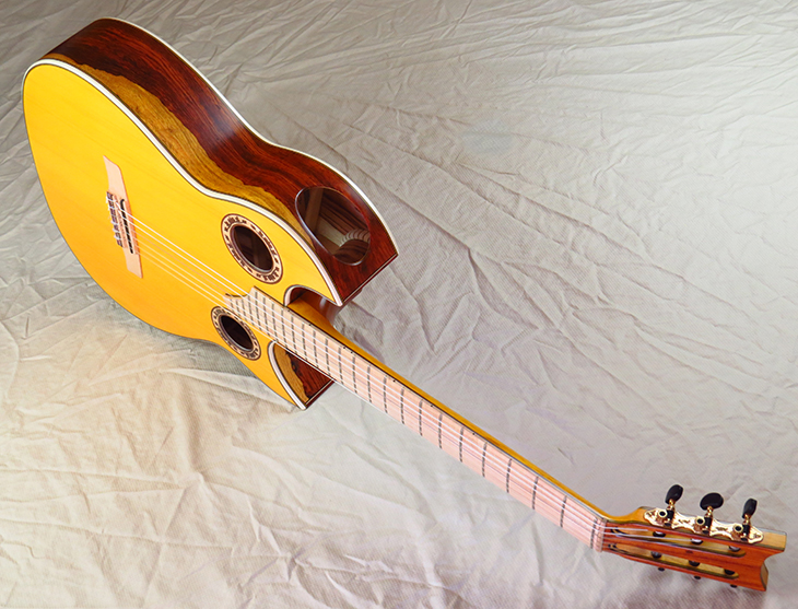 Model: Francisco Simplicio 1932 24 Frets Top: Norway Spruce Bridge: Cremona Maple Double Fretboard: Brazilian Naseberry & Cremona Maple Triple Fingerboard: Maple (with Radius) Back & Sides: Brazilian Rosewood Color: Yellow/Natural