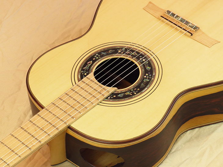 Model: Marcelo Barbero 1945 Top: Norwegian Spruce Bridge: Bird’s Eye Maple Fingerboard: Bird’s Eye Maple Neck: Maple Back and Sides: Bahía Brazilian Rosewood Color: Natural